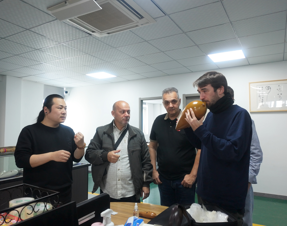 從泥土塑形到精細(xì)打磨,每道工序的匠心考究,都讓樂團成員頻頻驚嘆、贊不絕口。