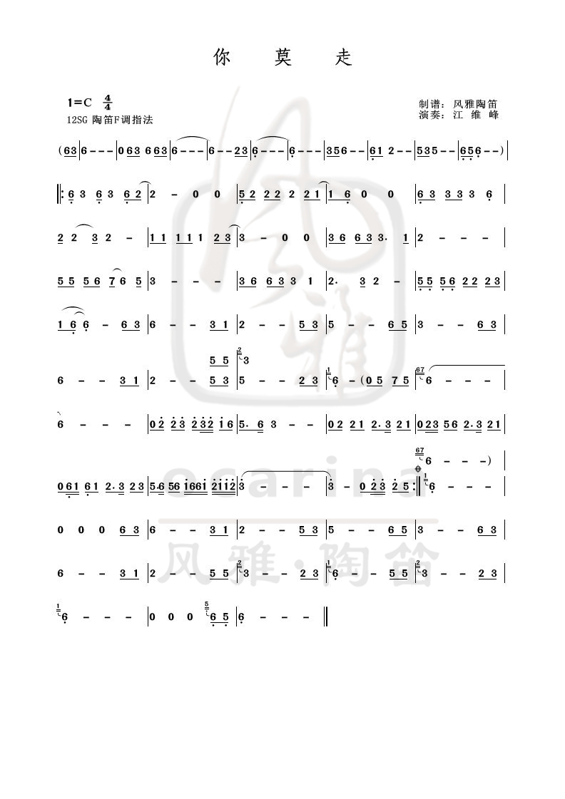 《你莫走》曲譜