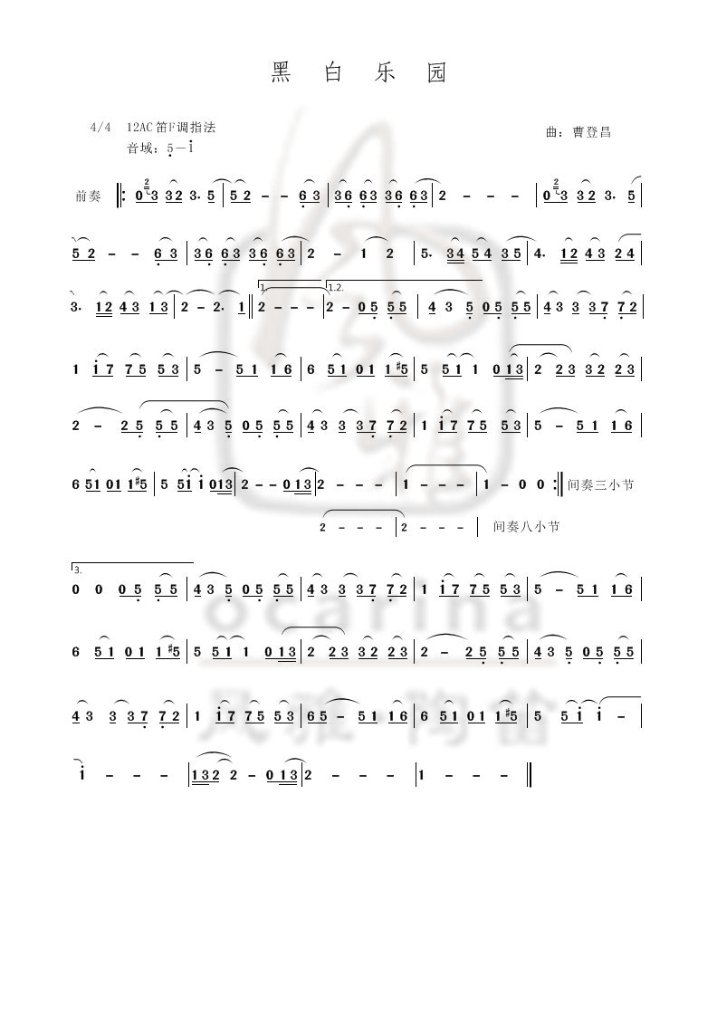 《黑白樂園》曲譜