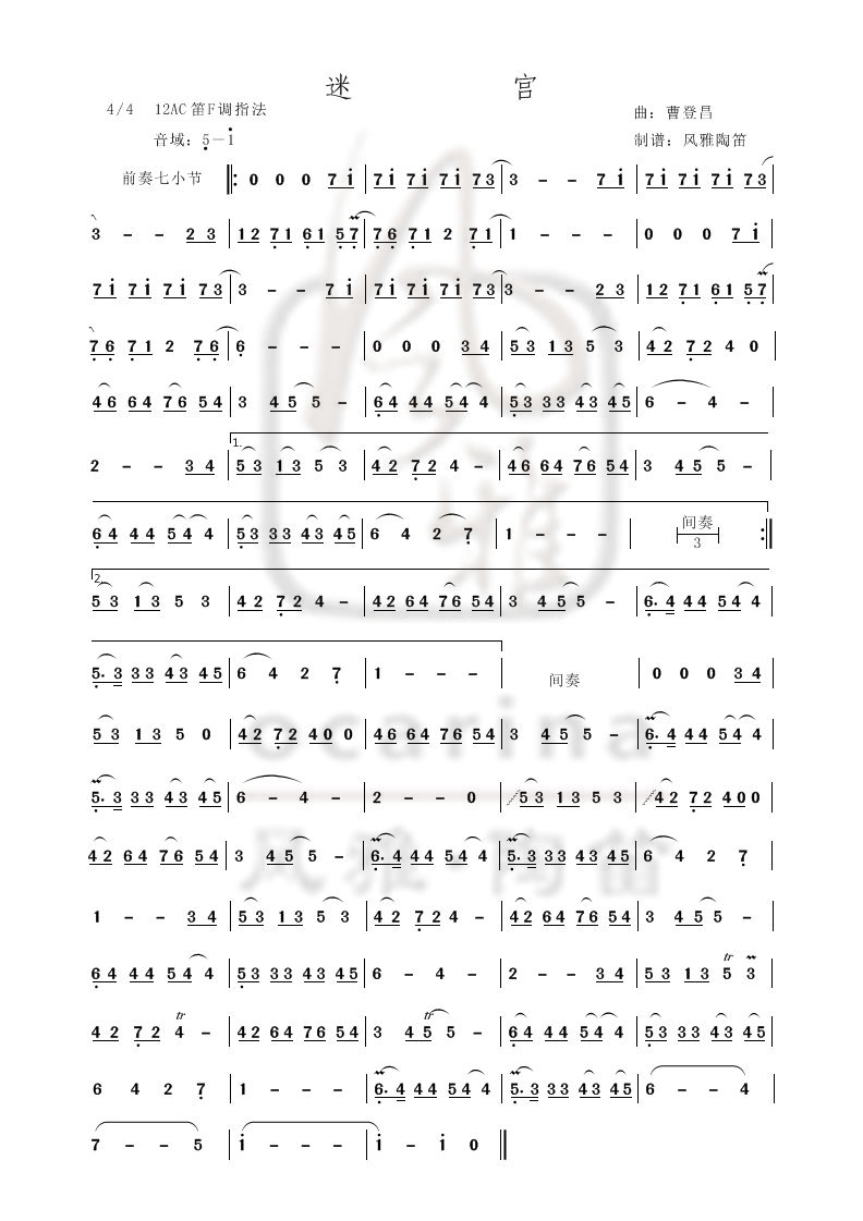 《迷宮》曲譜