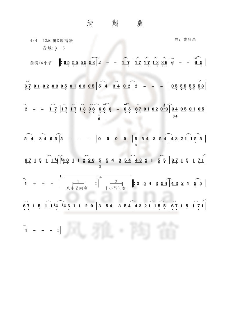 《滑翔翼》曲譜