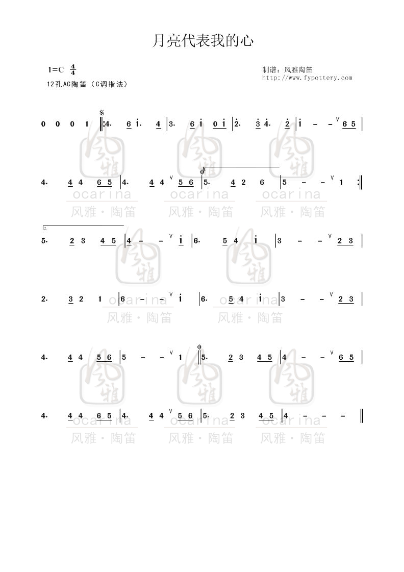 【月亮代表我的心】曲譜