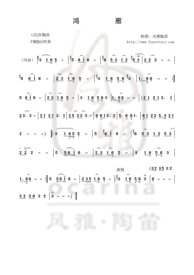 【鴻雁】曲譜