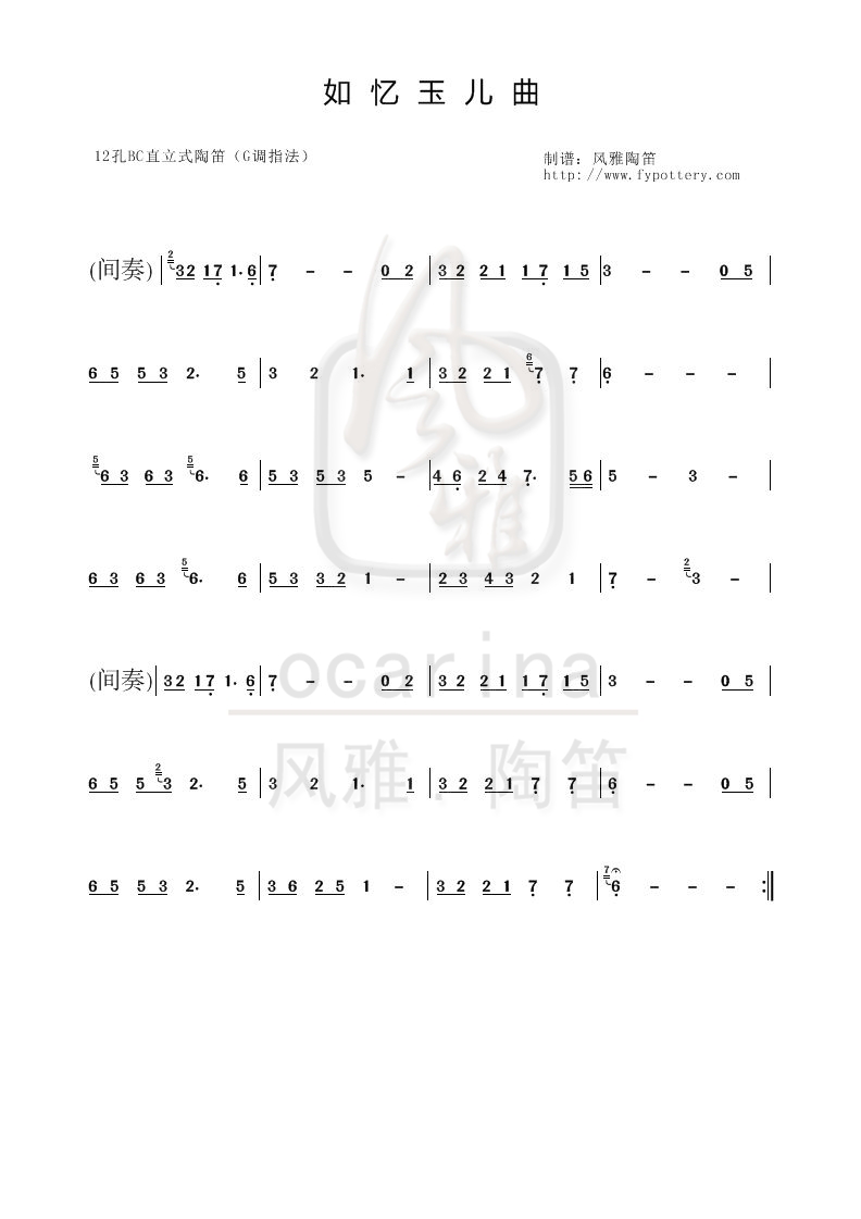 【如憶玉兒曲】曲譜