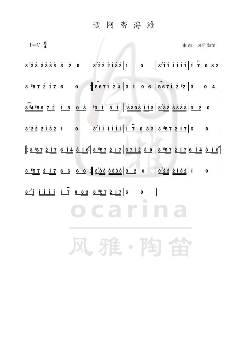 《邁阿密海灘》曲譜
