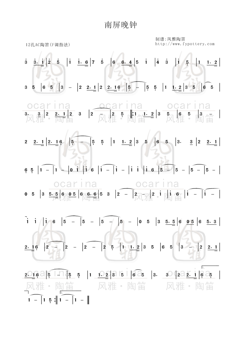 【南屏晚鐘】曲譜