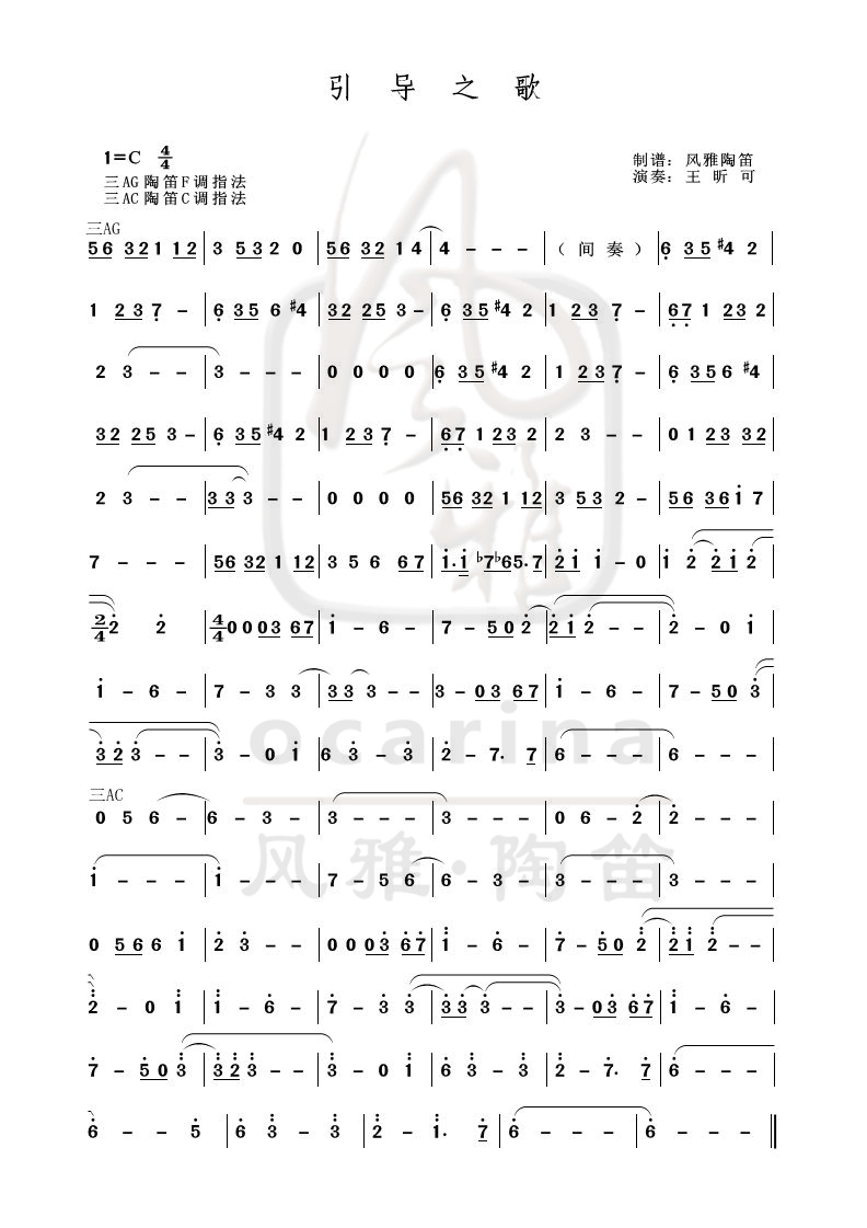 《引導(dǎo)之歌》曲譜