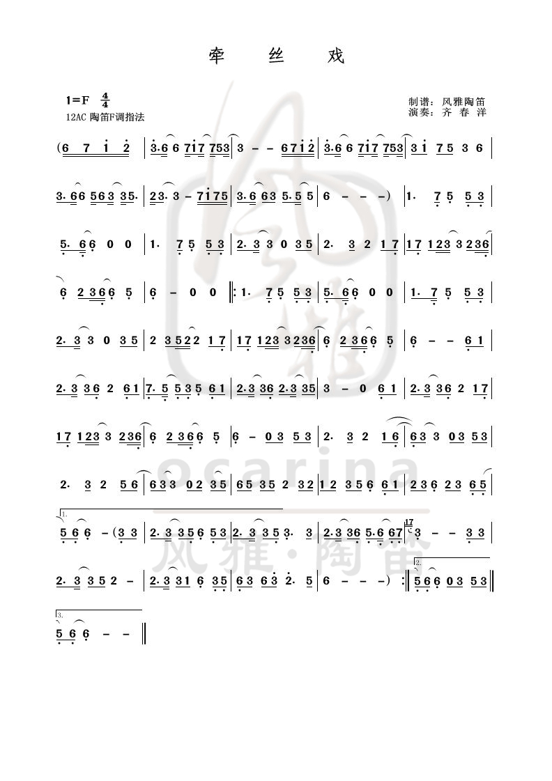 《牽絲戲》曲譜
