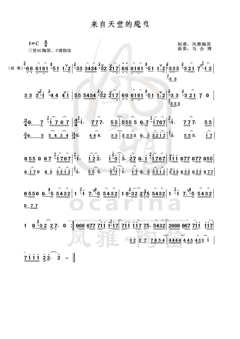 《來(lái)自天堂的魔鬼》曲譜