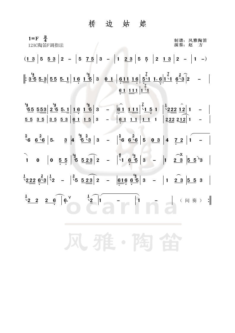 《橋邊姑娘》曲譜