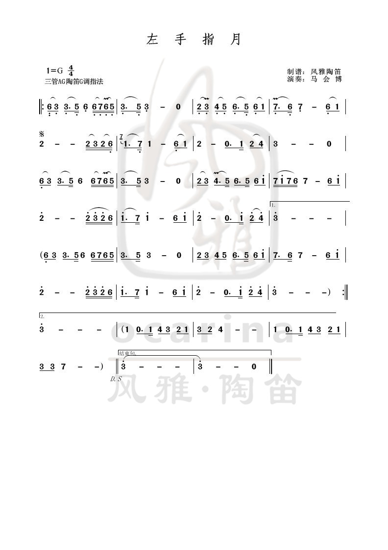 《左手指月》曲譜