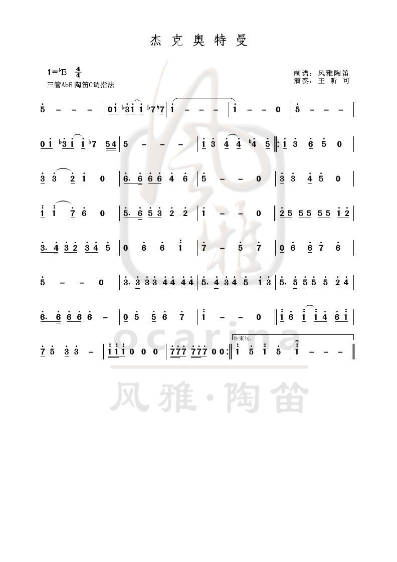 《杰克奧特曼》曲譜