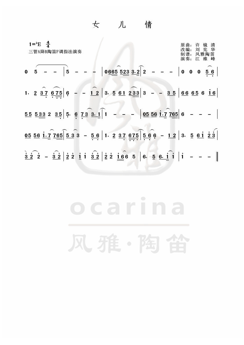 《女兒情》劉憲華改編曲譜