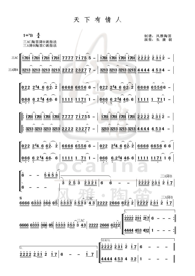 《天下有情人》曲譜