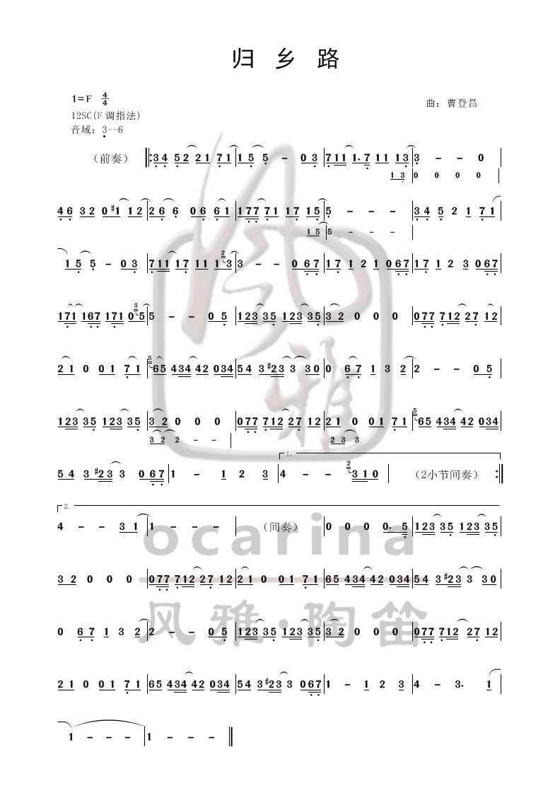 《歸鄉(xiāng)路》曲譜