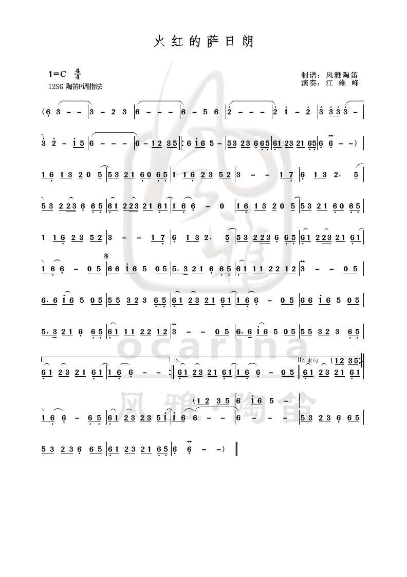 【火紅的薩日朗】曲譜