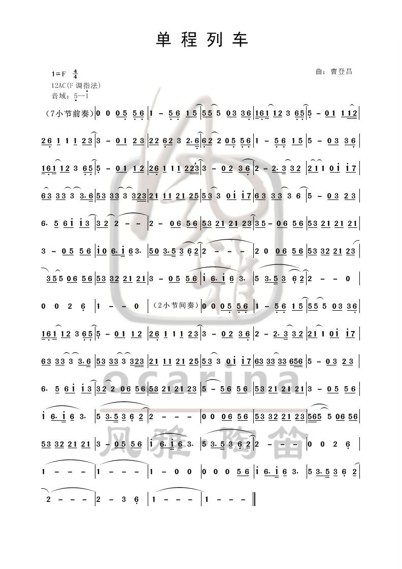 《單程列車》曲譜