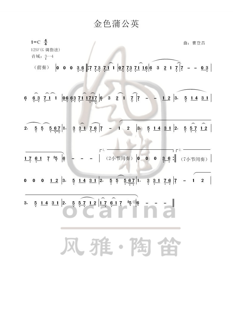 《金色蒲公英》曲譜