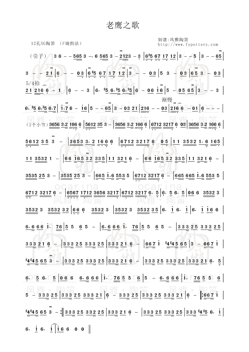 【老鷹之歌】曲譜