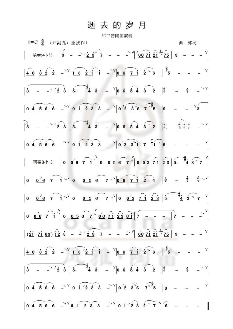 【逝去的歲月】曲譜-- 淘氣的陶器