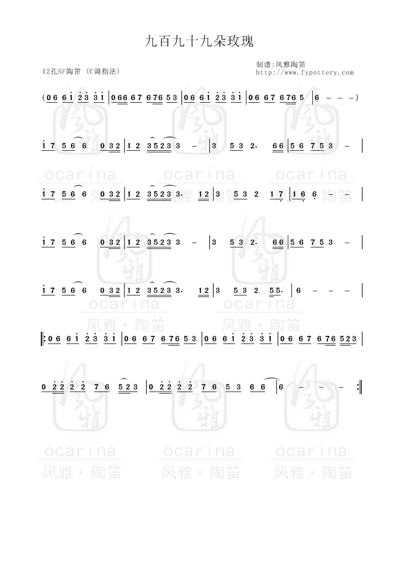 【九百九十九朵玫瑰】曲譜