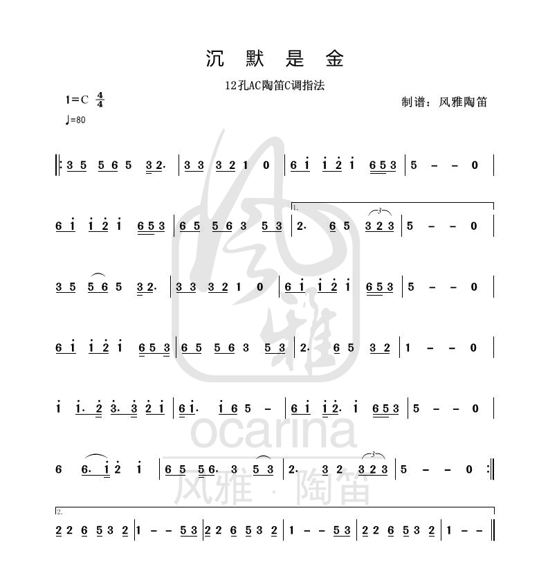《沉默是金》曲譜