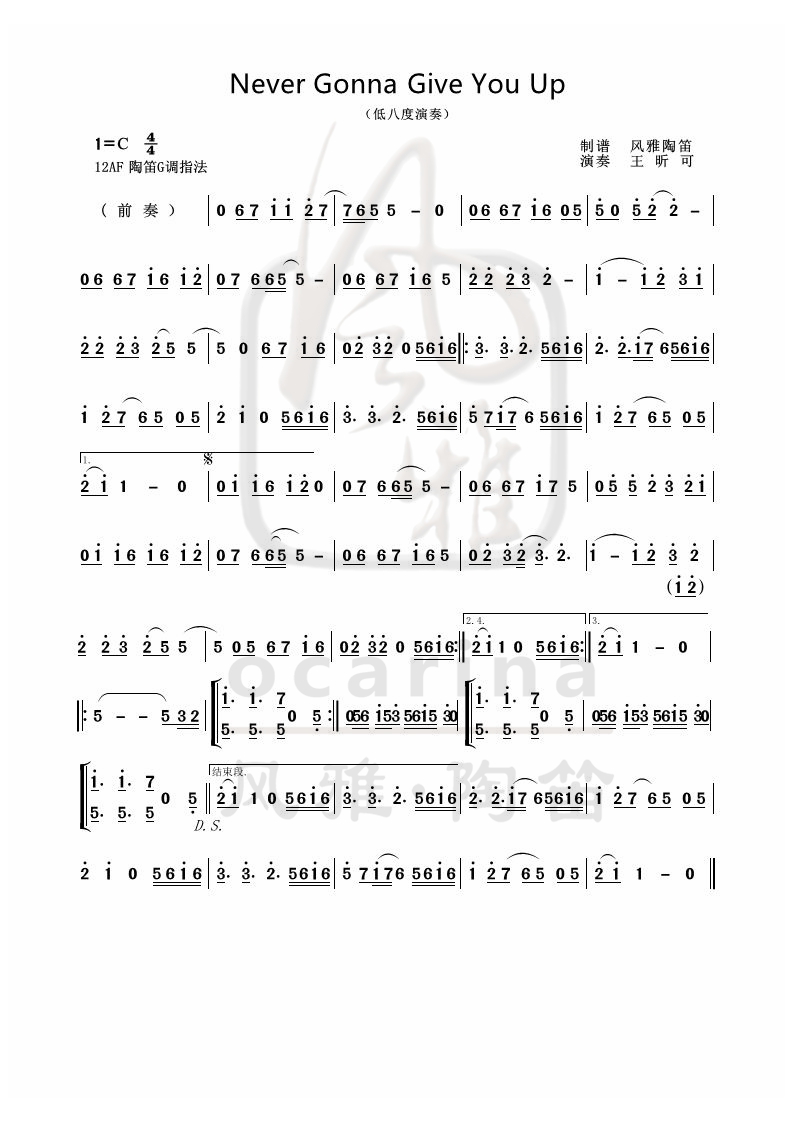 《Never Gonna Give You Up》曲譜
