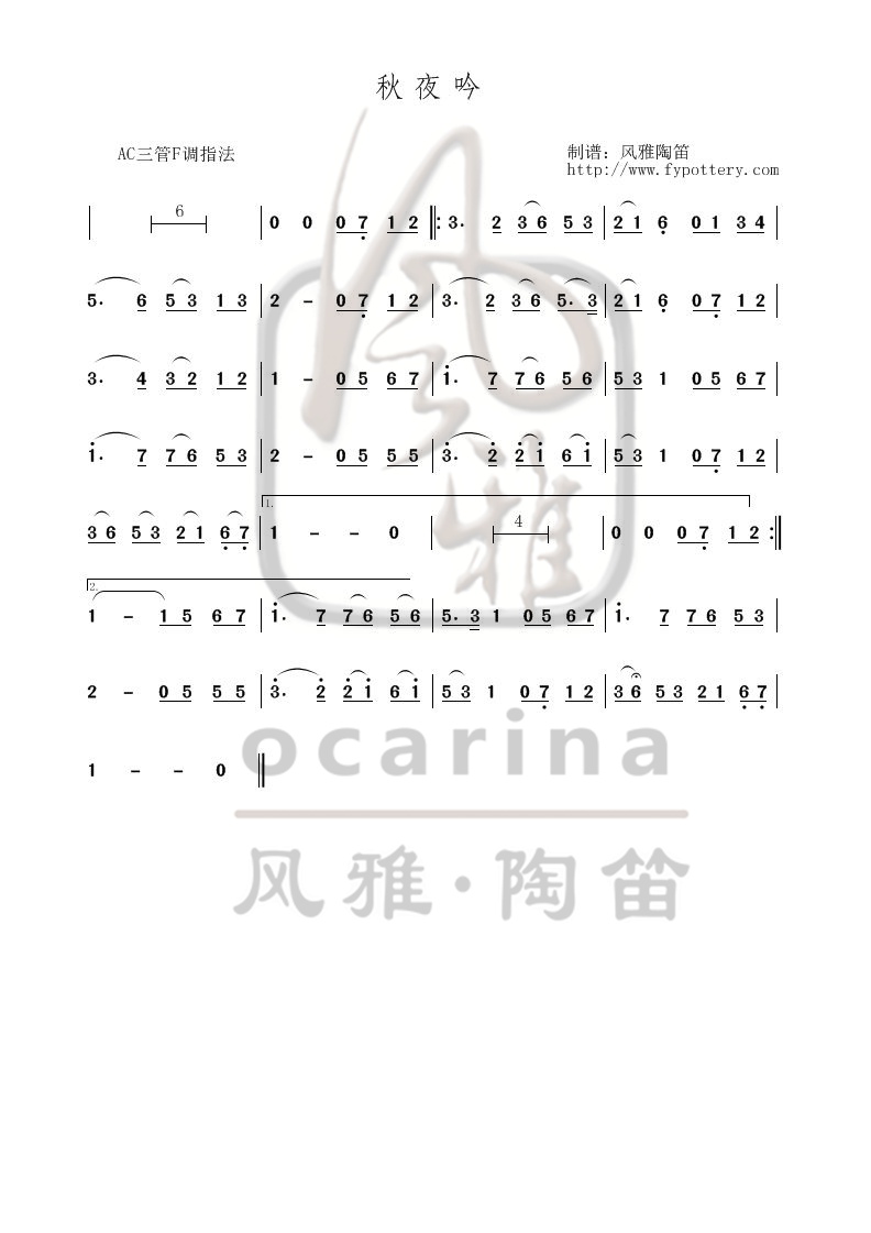 【秋夜吟】曲譜
