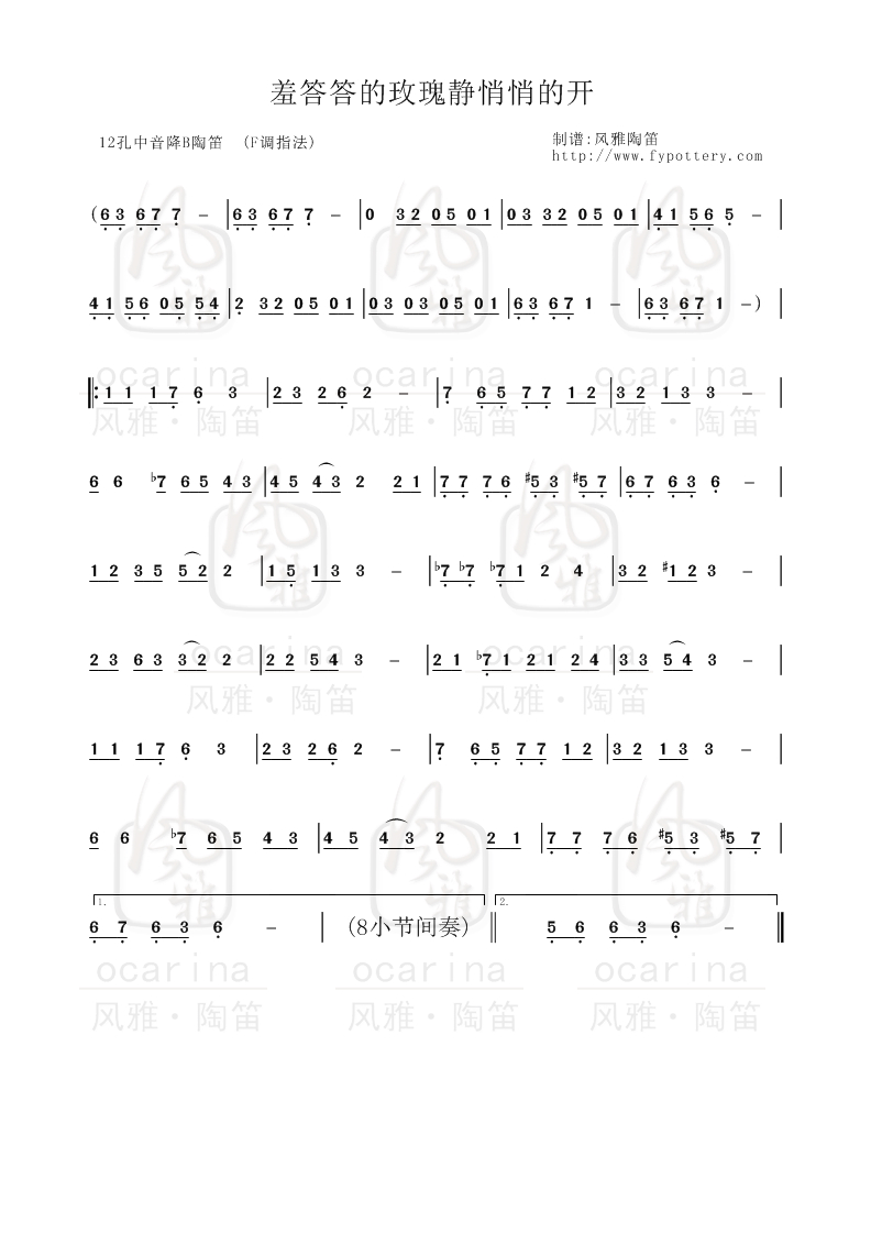 【羞答答的玫瑰靜悄悄的開(kāi)】曲譜